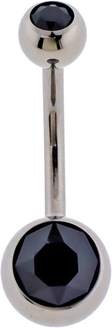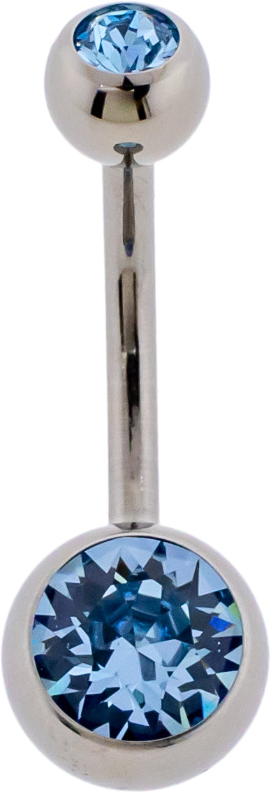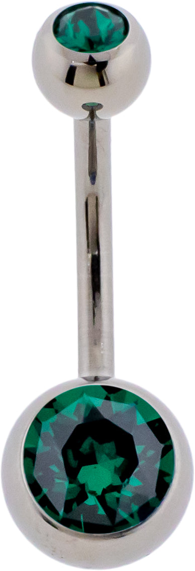 14G Steel Double Gem Navel Ring - Externally Threaded