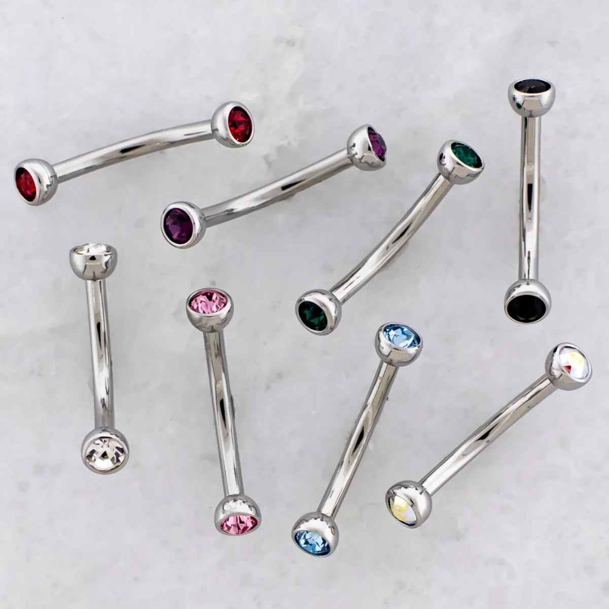 16G Steel Internally Threaded Curved Barbells w/ Bezel Set Premium Crystals