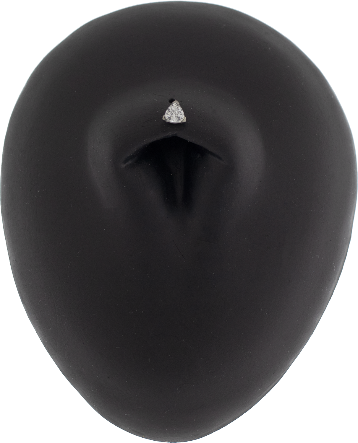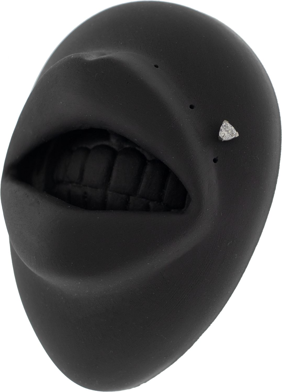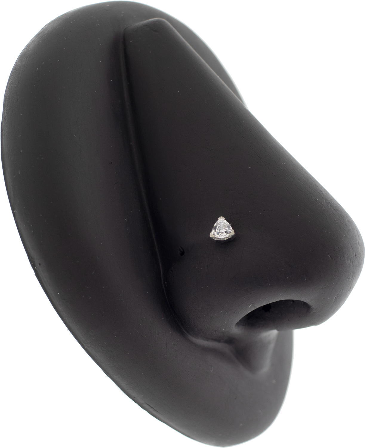 Indulge in the lavishness of Keon's low profile titanium prong set end, adorned with a spectacular trillion cut zirconia and featuring a wide prong setting and flat back for a touch of opulence.
