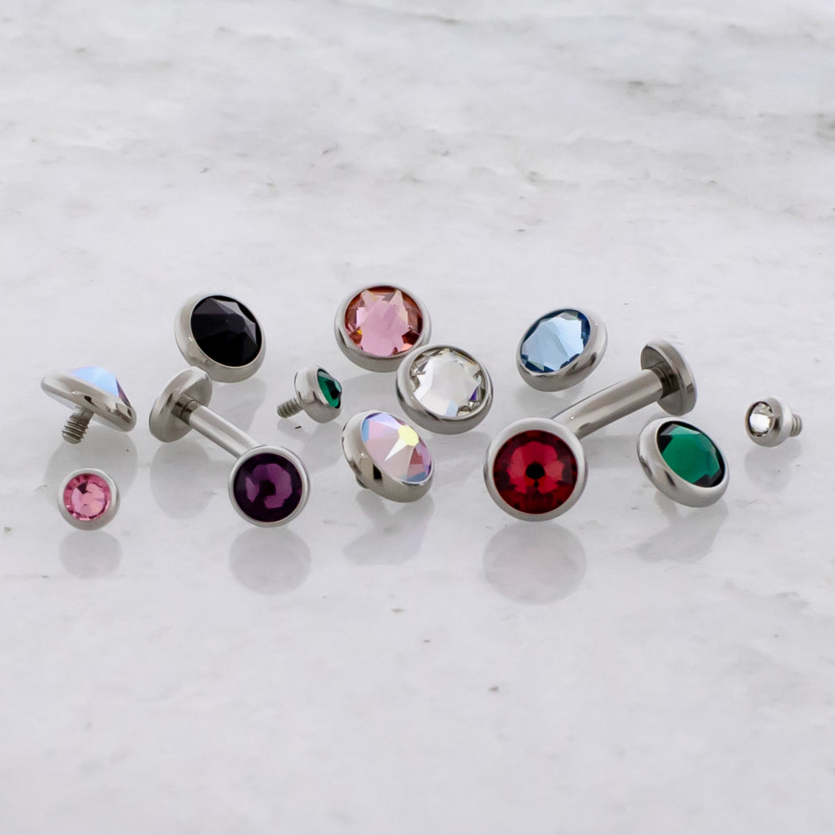 1PC – 14G 316L Steel Bezel Set Premium Crystal Disc Shaped End