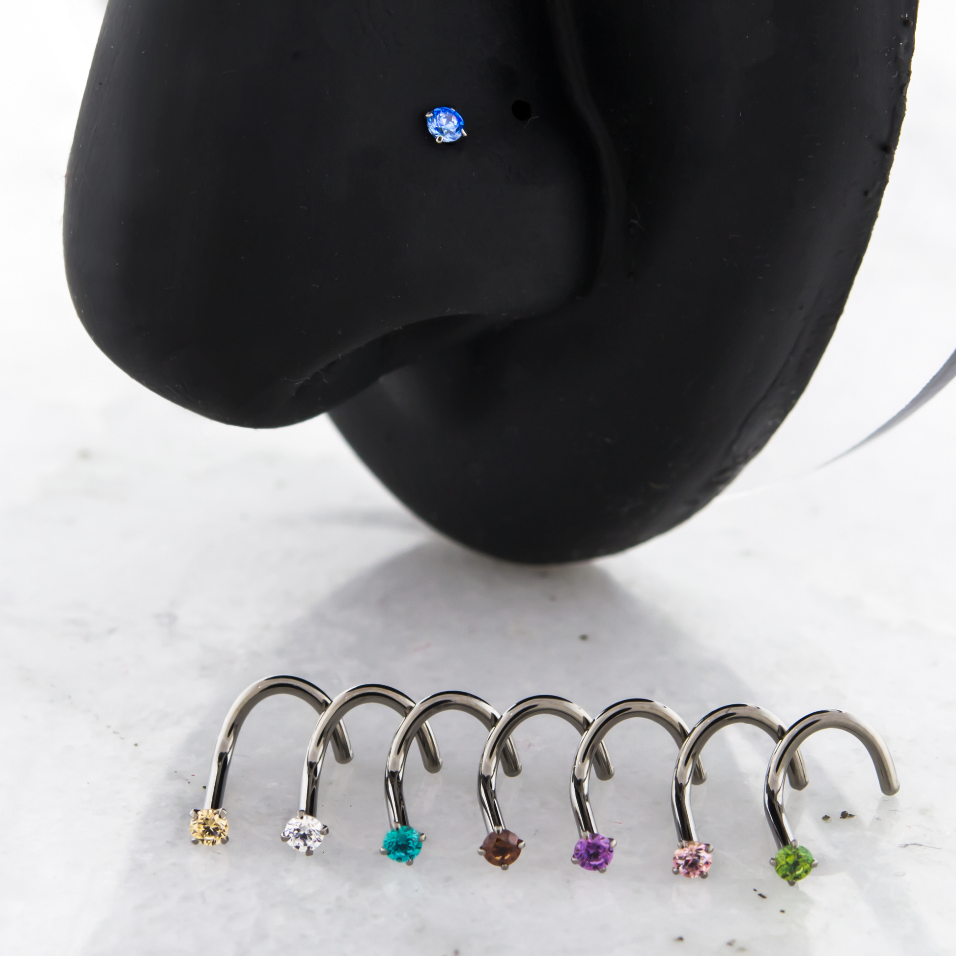 Enhance your elegance with our premium zirconia-adorned, hand-finished 316L implant grade steel nose screws. Each screw boasts a flawless cut and brilliant sparkle, reminiscent of a true diamond. Available in 9 captivating shades and 3 sizes for a perfect fit. *Please note that the black gems are crafted from high-quality ceramic with a brilliant cut.