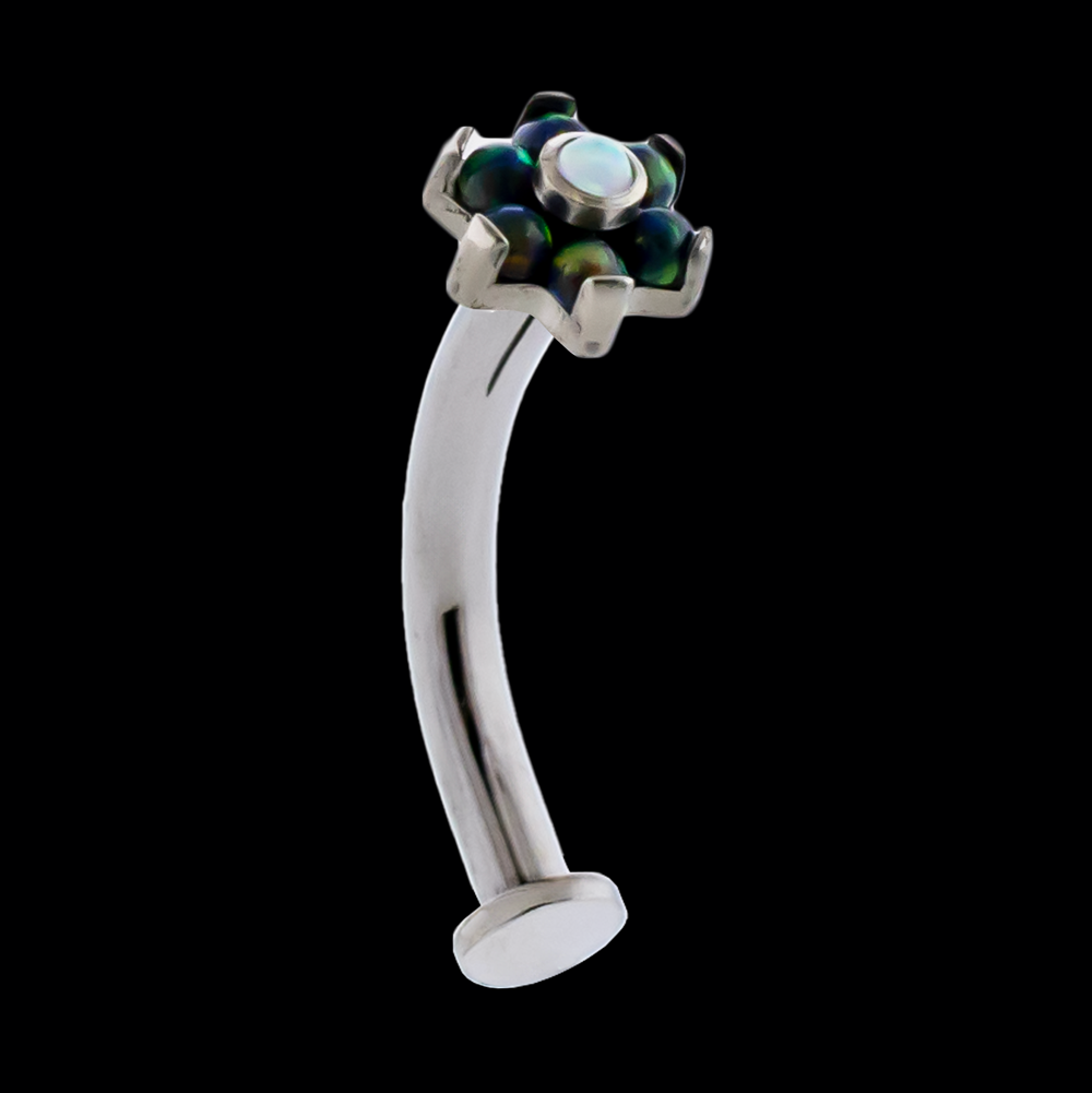 1PC – 14G ASTM F-136 Titanium Prong Set Synthetic Opal Or Gem Flower End